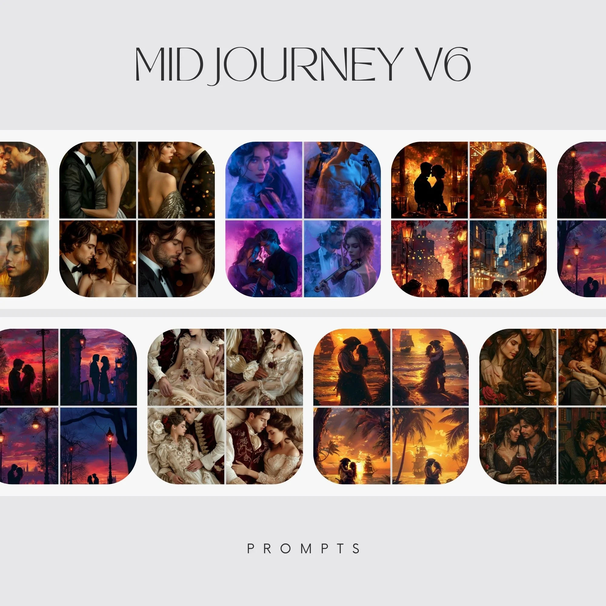 Romance Book Cover Art Midjourney AI Prompts // DIGITAL DOWNLOAD