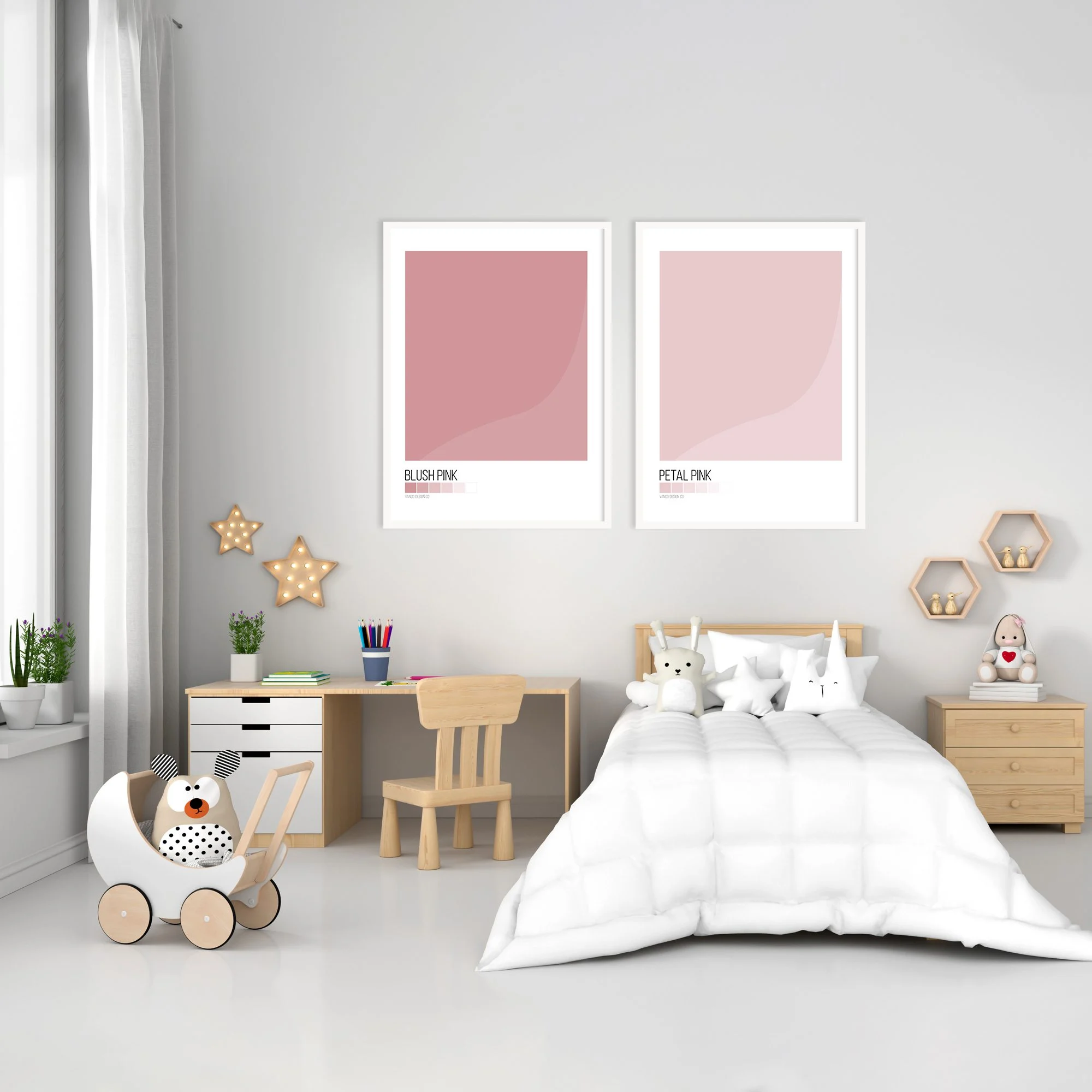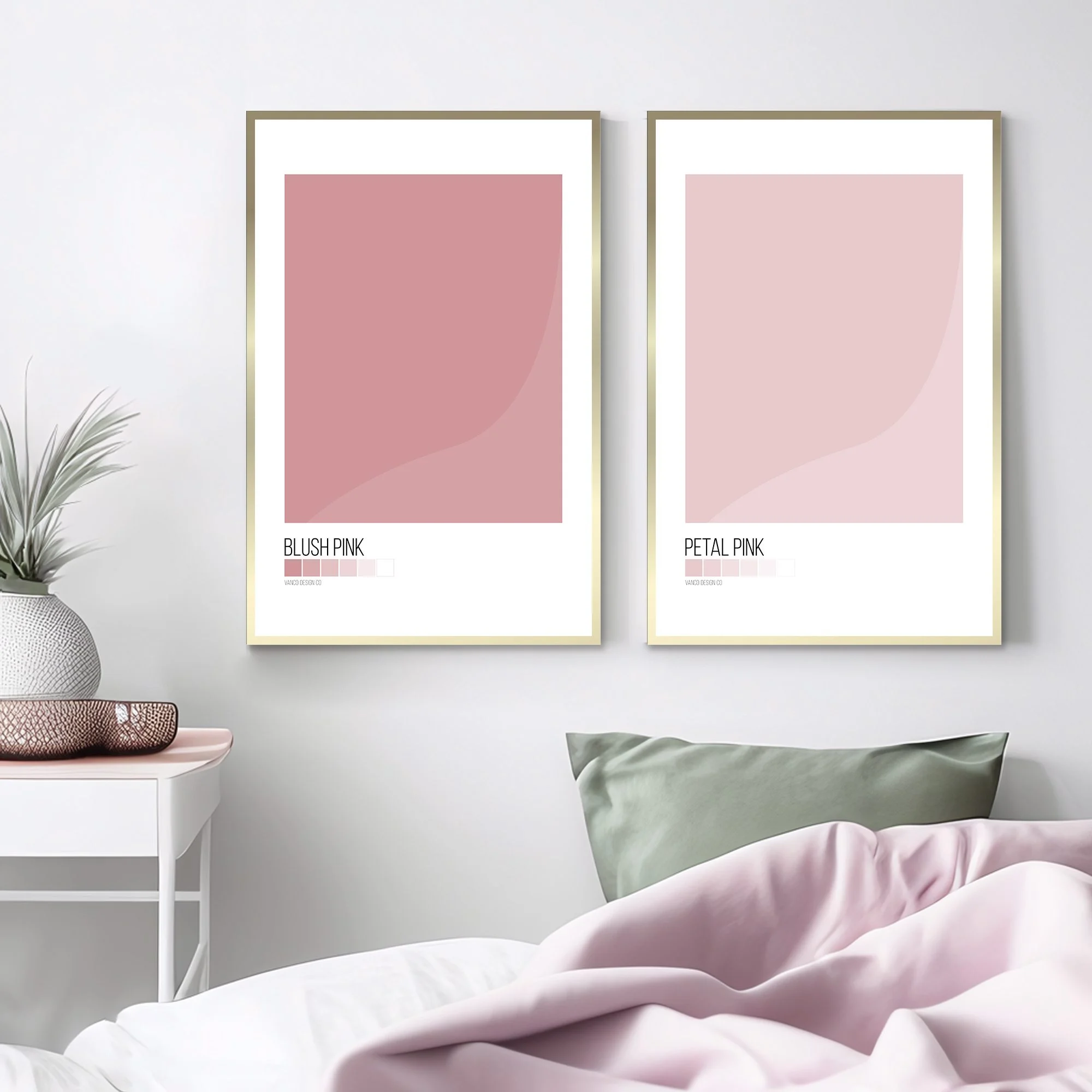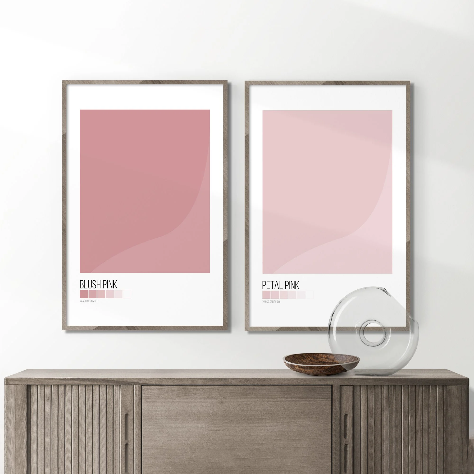 Add a modern touch to your space with this trendy pink colour block wall art set of 2. With stylish clean lines and bold shades of blush pink and soft petal pink, this minimalist artwork duo is perfect for contemporary home decor, girl boss office or teen dorm rooms and chic creative spaces.